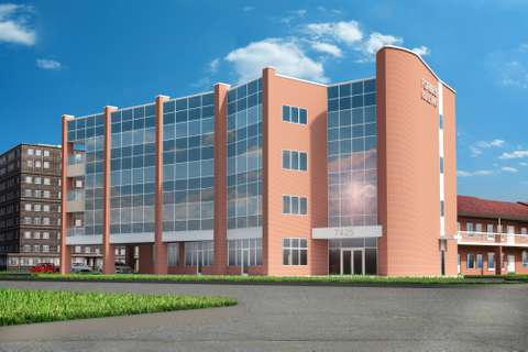 Aesthetic integration of two office buildings in Lanham, MD.