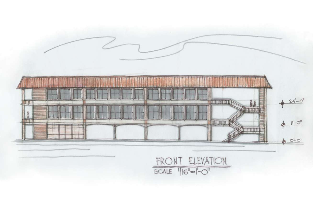 VAAB developed Preliminary Site Analysis and Program requirements to establish the scope of work for the Schematic Design. Our recommendation was to raise a two story building on concrete piers to accommodate additional parking and achieve 10,000 SF of office space.
