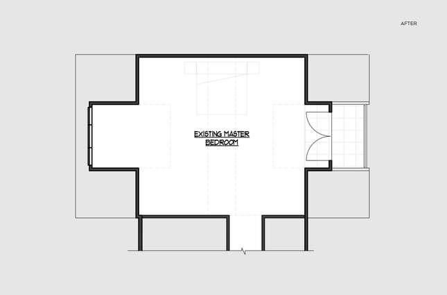 It was hard to believe that the developers of this stock suburban house put in a huge master bedroom (450 square feet) with only one window that never got enough light and made it impossible to ventilate the space. The owners came to us to create a more light-filled space that they could enjoy starting the day in. Our solution rebalanced the dark bedroom space by adding an east-facing balcony overlooking a private garden, where the owners spend their early morning hours taking in the sun and watching birds.